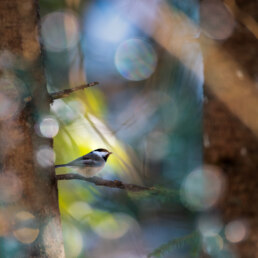 This chickadee has no idea it’s part of an elaborate experiment involving Christmas lights, camera lenses, and mild cabin fever — the sort of thing that happens when one spends too many mornings photographing the same pine tree.