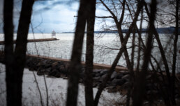 The breakwall stretched ahead, calm lake on both sides, the lighthouse a small promise at the end. Even grey days feel like adventures here.