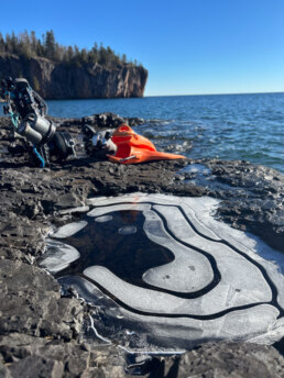Nothing says “good morning” like finding your dive site frozen before you are. The puddles turned to topographic maps of ice, yet there I was—prepping to hop into water only slightly less frigid. Lake Superior has a talent for reminding you that humans are profoundly silly creatures.