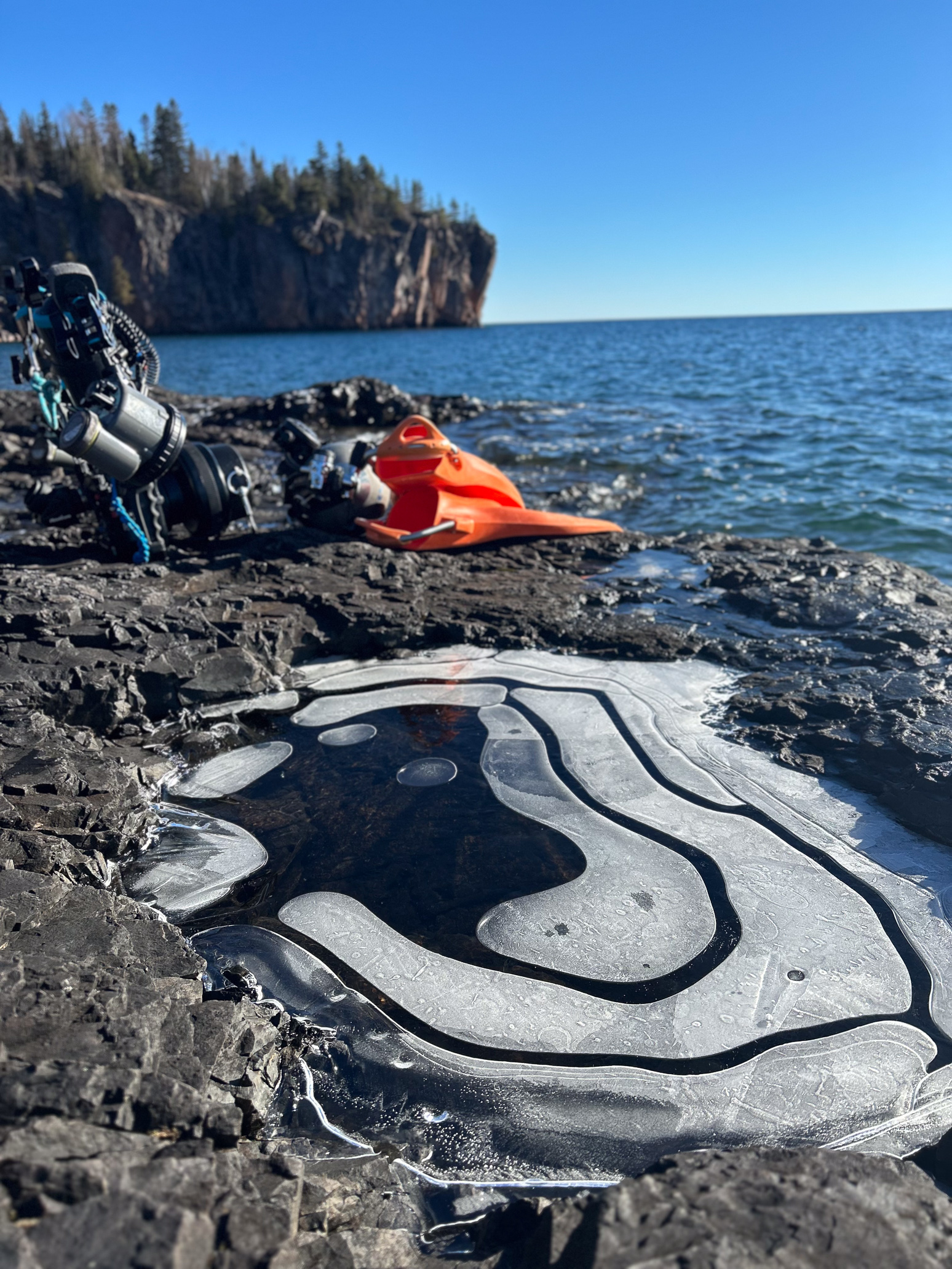 Nothing says “good morning” like finding your dive site frozen before you are. The puddles turned to topographic maps of ice, yet there I was—prepping to hop into water only slightly less frigid. Lake Superior has a talent for reminding you that humans are profoundly silly creatures.