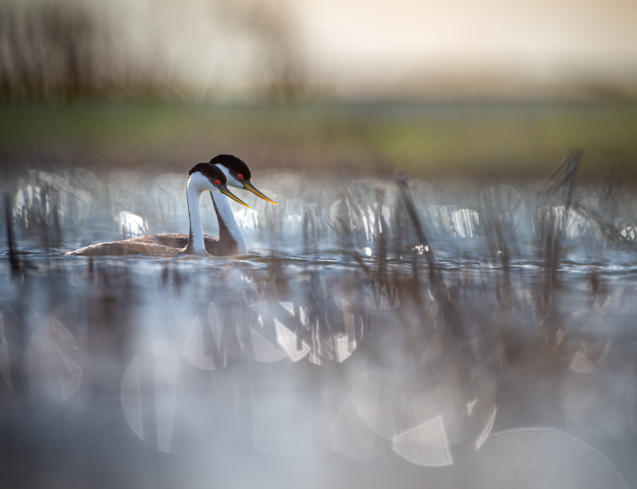 Photographed mid-courtship in a North Dakota prairie pothole. These birds will shortly rear up and patter across the water's surface in what can only be described as synchronized swimming meets Riverdance. It's extraordinarily silly and utterly magnificent in equal measure.