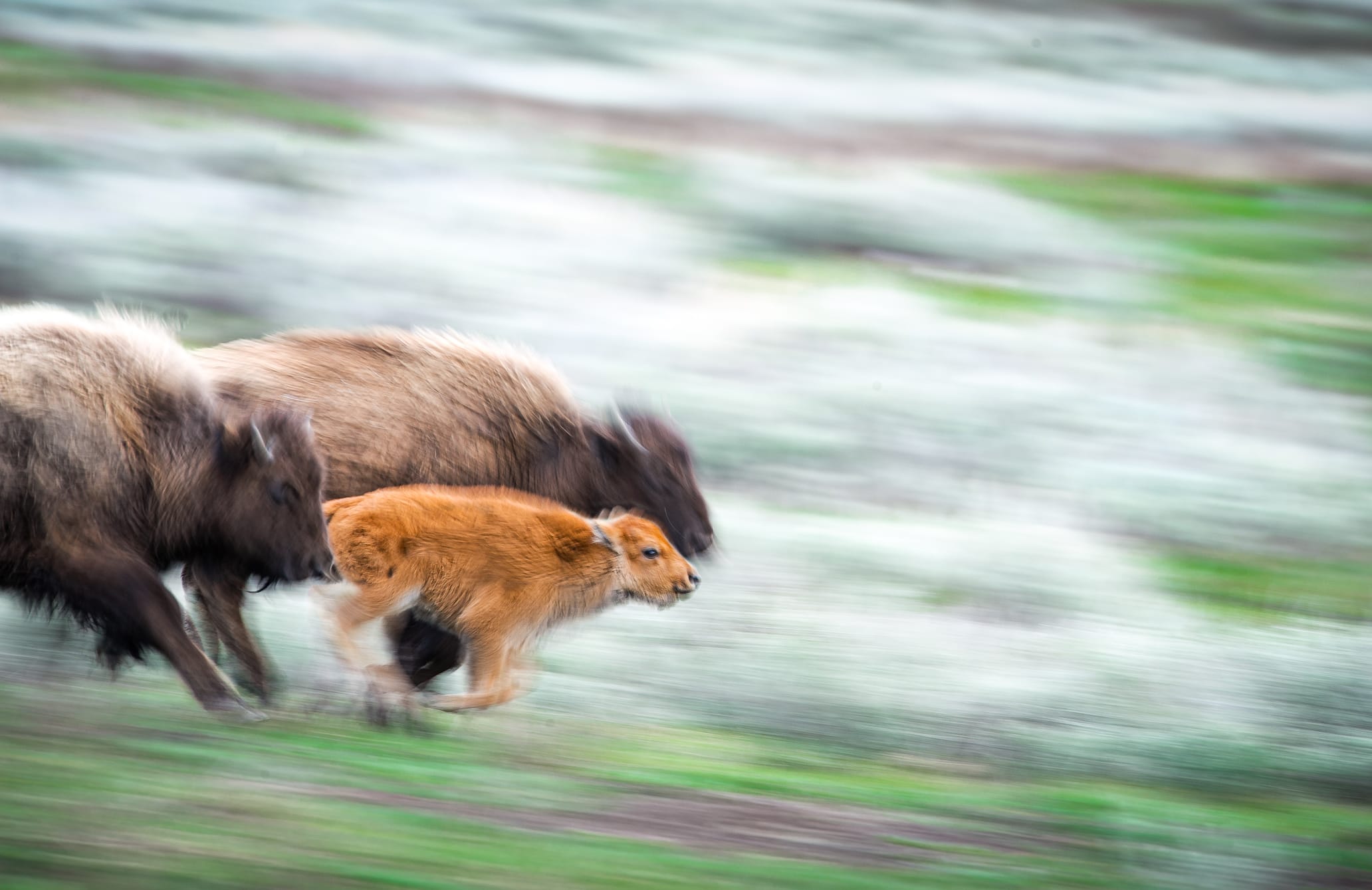 In spring, the prairies of Theodore Roosevelt National Park fill with cinnamon colored bison calves ~ nicknamed “red dogs” ~ doing their best to keep up with the thundering adults.