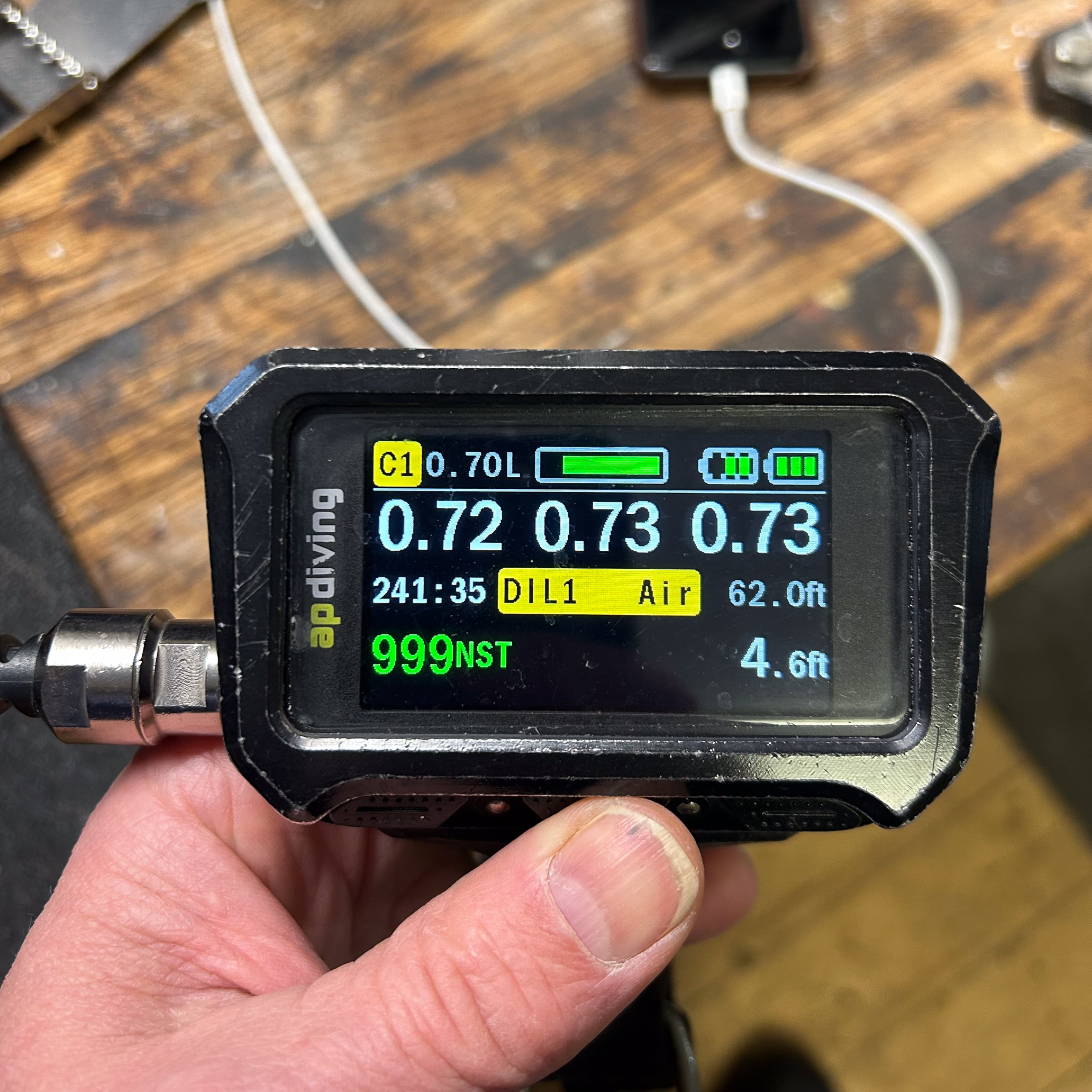 According to my rebreather controller, I’ve been underwater for 241 minutes and currently at 4.6 feet. I’m in my garage. Apparently winter has suspended both physics and reason.